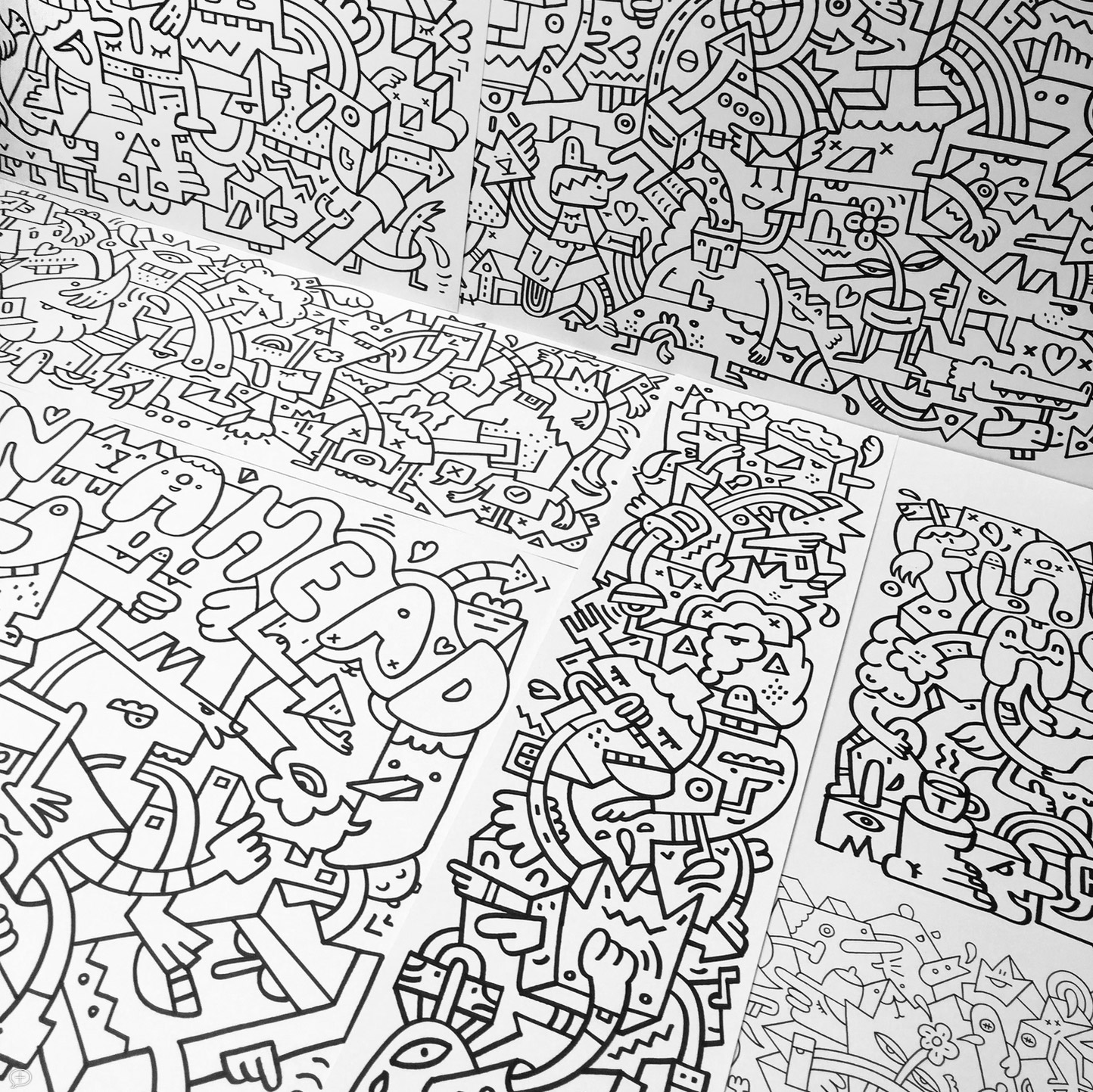 All my work starts as a drawing with either Sharpies, Poscas or Mitsubishi uni Pin pens. Depending on the commission it's either painted, or photographed, vectorised and coloured digitally.