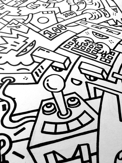 I was asked to produce a mural to incorporate Unity's core value to 'be bold' whilst including references to the many sectors that their products are used in, especially gaming. See if you can spot the references… Oh, and you may have guessed, the mural is on Level 2 of the building (see what I did there?).
